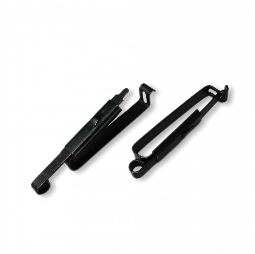Antes do velcro e do sistema Molle, usavam-se clipes como este para prender o cantil ao cinto e as bolsas de primeiros socorros à mochila, entre outros acessórios militares.