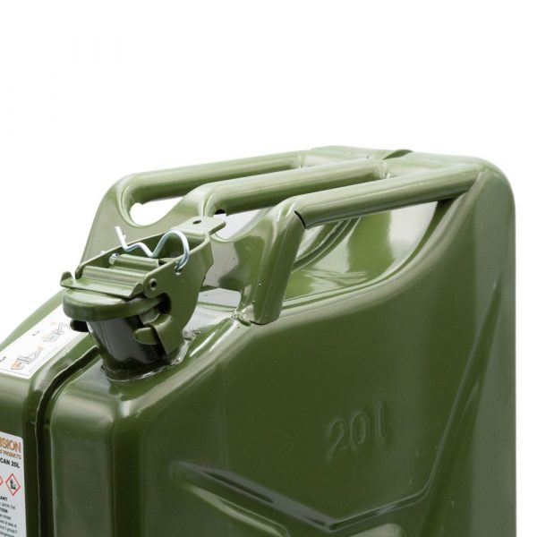 Este jerrican de metal é ideal para transportar combustível.